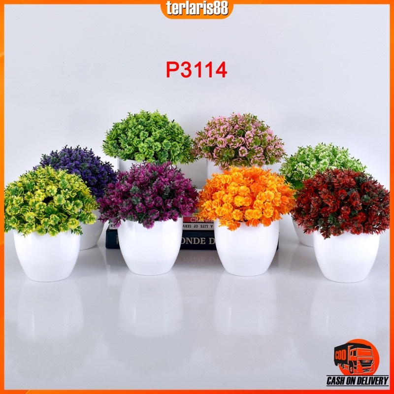COD / TL88 POT TANAMAN BUNGA HIAS DEKORASI RUANGAN BUNGA PLASTIK HIAS P3114